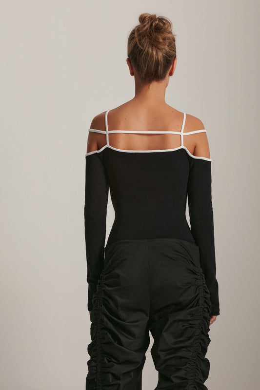 EsgotadoBLUSA MALHA PRETA VIÉS OFF WHITE