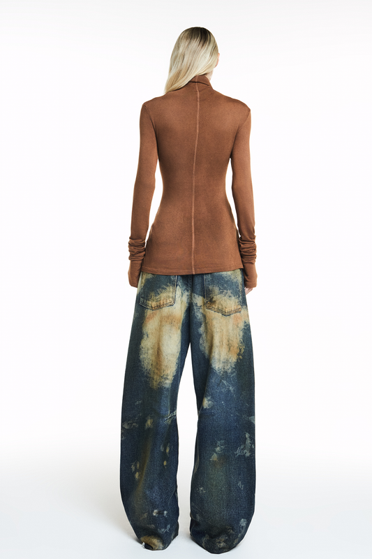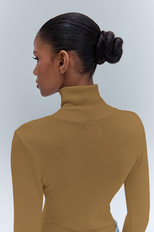 BLUSA MANGA LONGA GOLA ALTA MALHA CARAMELO