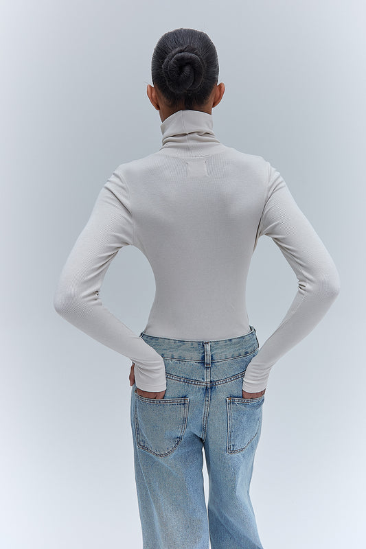 BLUSA MANGA LONGA GOLA ALTA MALHA BEGE