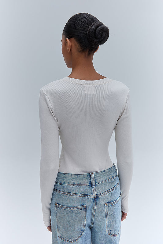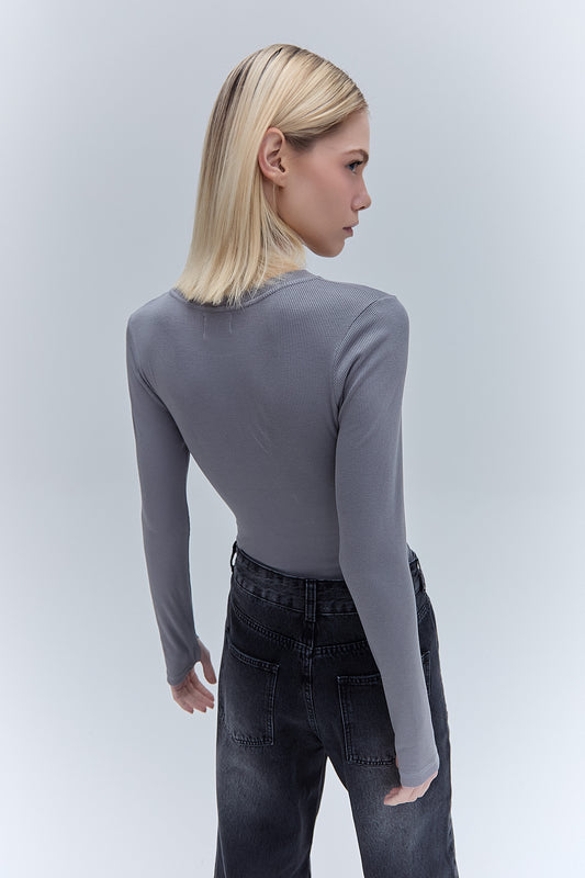 SaleBLUSA MANGA LONGA DECOTE CARECA MALHA CINZA CLARA