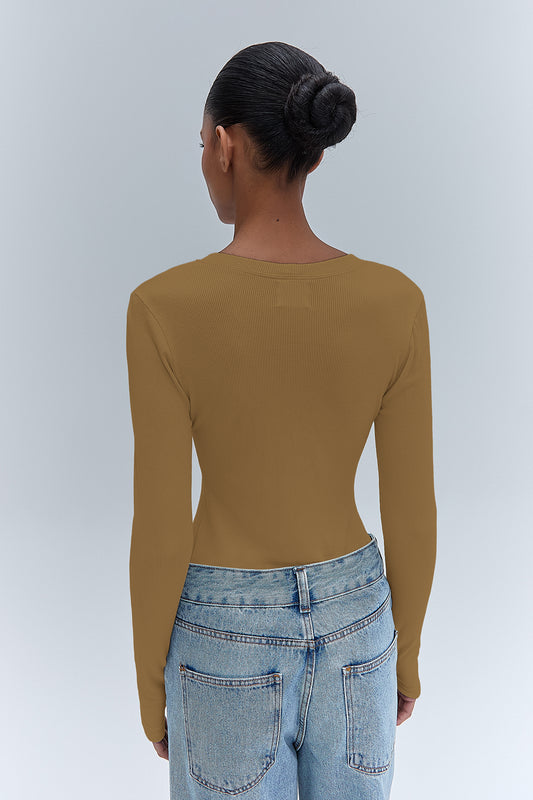 SaleBLUSA MANGA LONGA DECOTE CARECA MALHA CAMELO