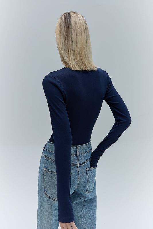 EsgotadoBLUSA MANGA LONGA GOLA ALTA MALHA AZUL MARINHO