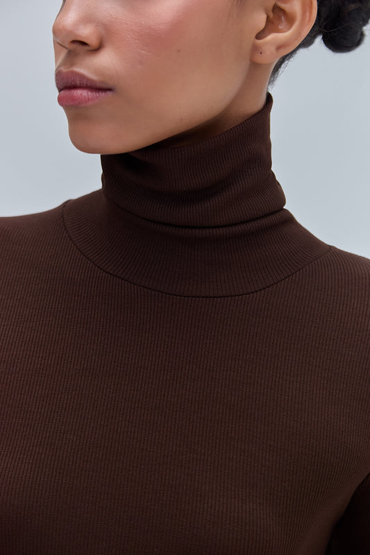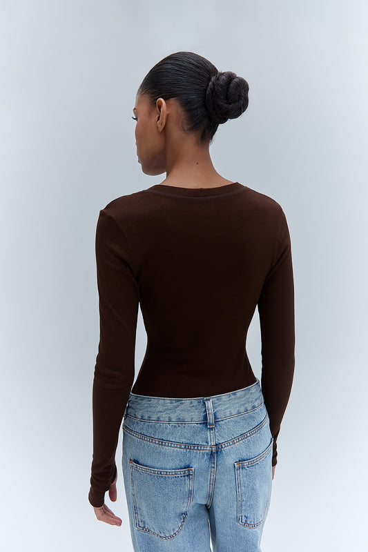 EsgotadoBLUSA MANGA LONGA DECOTE CARECA MALHA MARROM