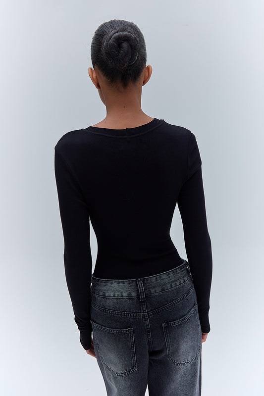 EsgotadoBLUSA MANGA LONGA DECOTE CARECA MALHA PRETA