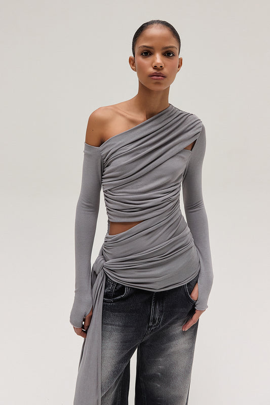 EsgotadoBLUSA MALHA TRANSPASSES CINZA
