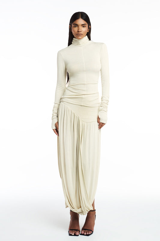 EsgotadoBLUSA MANGA LONGA DECOTE CARECA MALHA BEGE