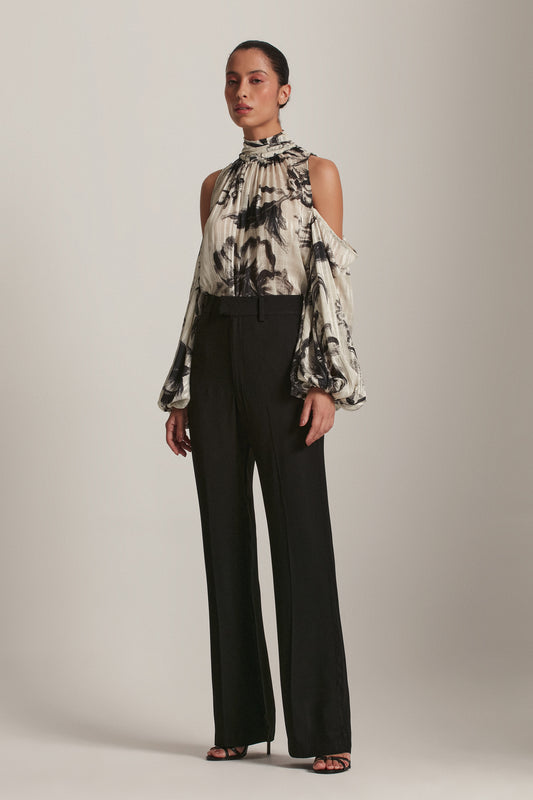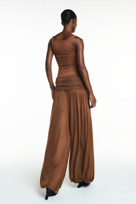 CALÇA ALADIM PALA DRAPEADA GEORGETE POÁ MANTEIGA