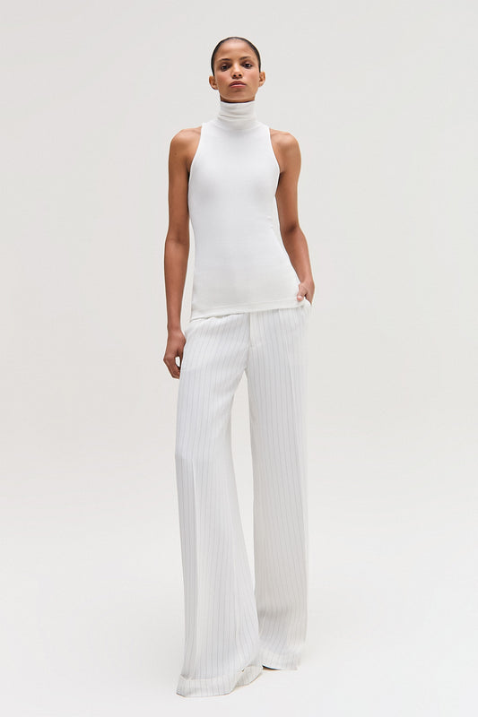 CALÇA ALFAIATARIA BARRA ITALIANA CREPE PATOU RISCA DE GIZ OFF WHITE