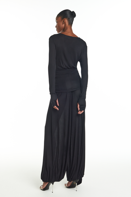 CALÇA ALADIM PALA DRAPEADA GEORGETE POÁ PRETO
