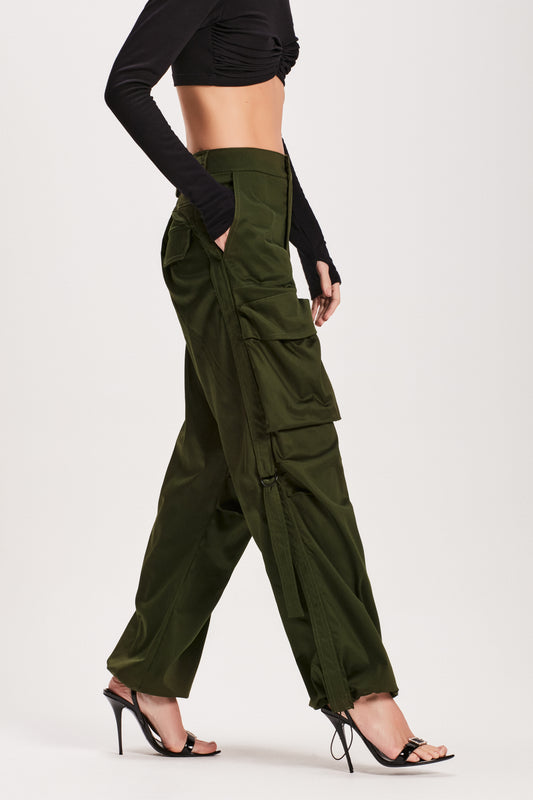 EsgotadoCALÇA CARGO ELÁSTICO CINTURA TRICOLINE VERDE