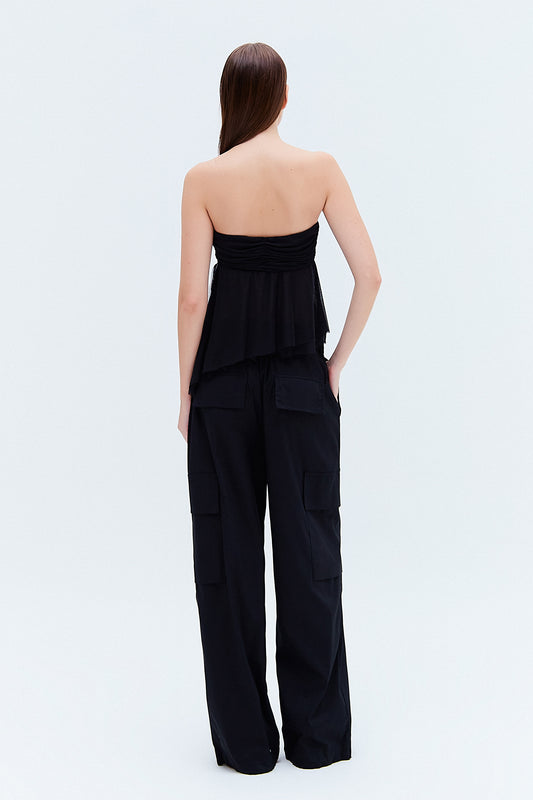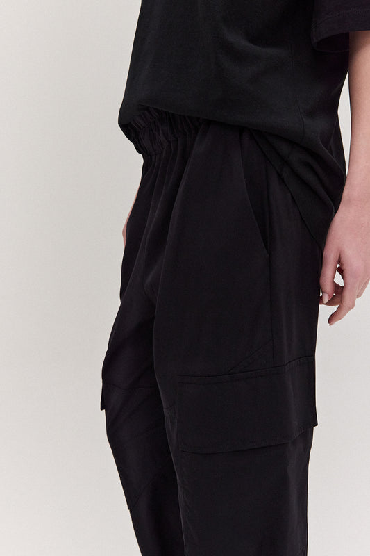 EsgotadoCALÇA CARGO ELÁSTICO CINTURA TRICOLINE PRETA
