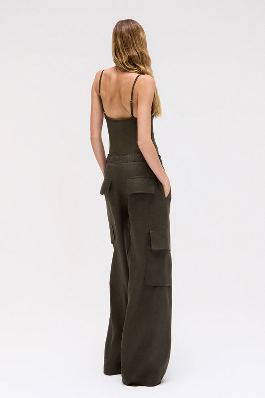 EsgotadoCALÇA CARGO ELÁSTICO CÓS LINHO VERDE MILITAR