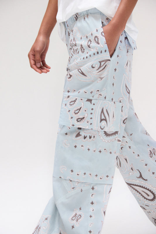 EsgotadoCALÇA CARGO ELÁSTICO CINTURA TRICOLINE BANDANA AZUL