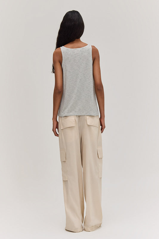CALÇA CARGO ELÁSTICO CINTURA TRICOLINE OFF WHITE