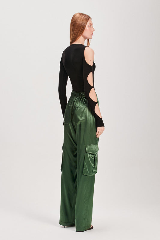 EsgotadoCALÇA CARGO RETA CETIM VERDE
