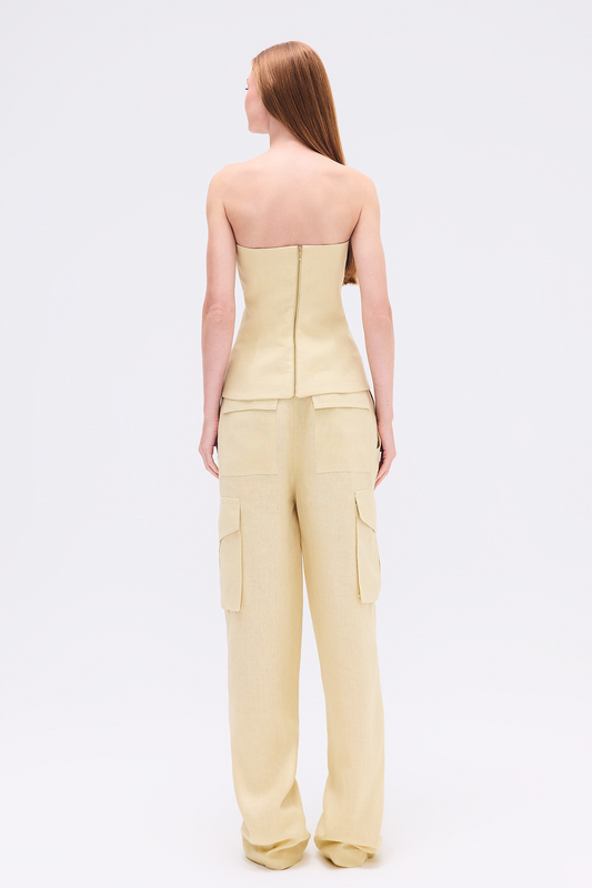 SaleCALÇA CARGO PREGAS LINHO AMARELO CLARO
