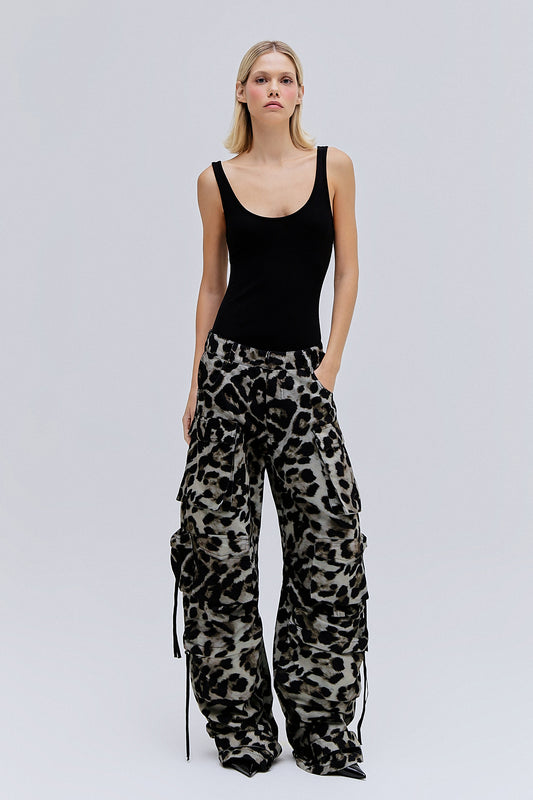 EsgotadoCALÇA CARGO SARJA ESTAMPA ONÇA