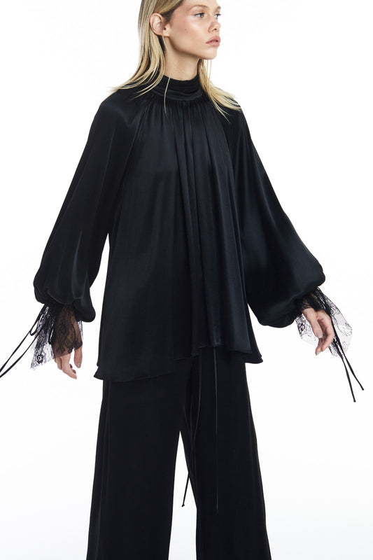 CALÇA CÓS ELÁSTICO CETIM PRETO