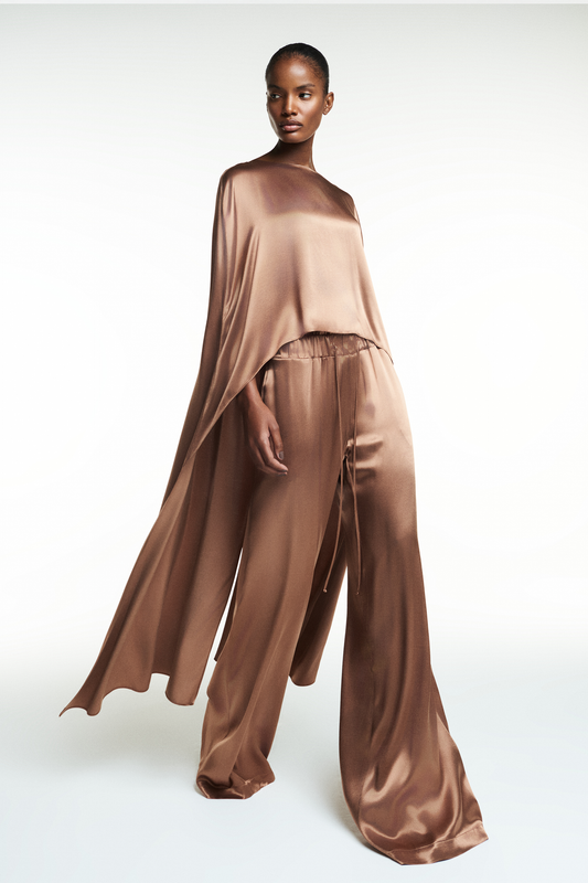 CALÇA CÓS ELÁSTICO CETIM MARROM