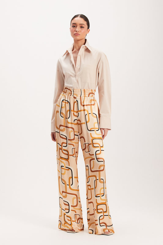 CALÇA CÓS ELÁSTICO CETIM CREME