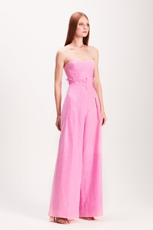 EsgotadoCALÇA CINTURA ALTA LINHO GROSSO ROSA CHICLETE