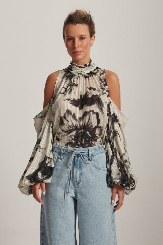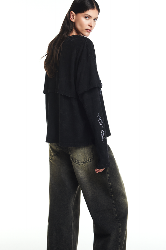 CALÇA JEANS BALLOON MANCHADA COM RASGOS