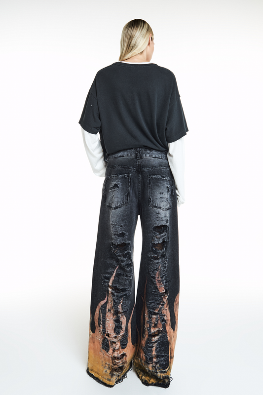 EsgotadoCALÇA JEANS BLACK FOGO COLORIDO PINTADO À MÃO