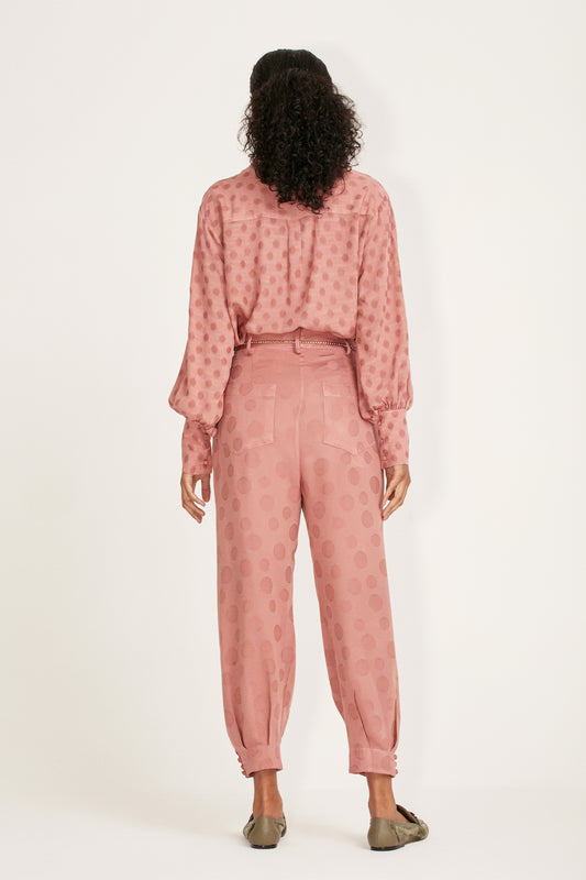 EsgotadoCALÇA JACQUARD POÁ ROSA VELHO