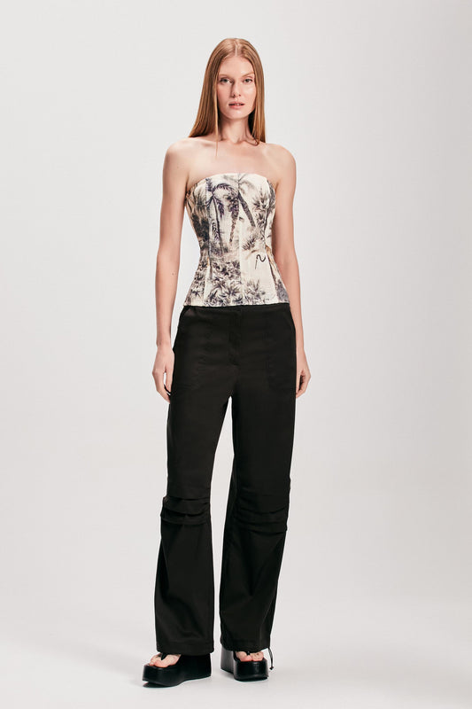 CALÇA RECORTES FAIXAS SARJA PRETAPreço normal R$ 1.790,00Preço normalPreço unitário porR$ 1.790,00Preço promocional R$ 1.790,008x R$ 223,75