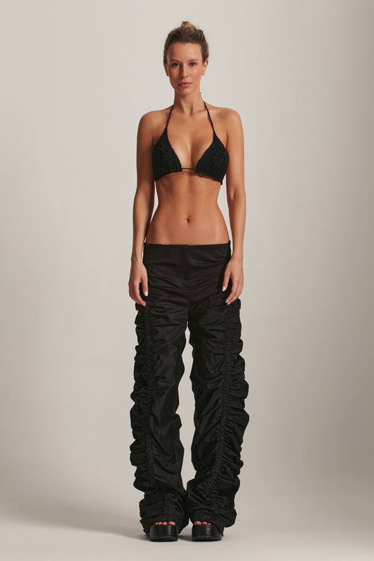 CALÇA RECORTES FAIXAS CETIM PRETAPreço normal R$ 1.790,00Preço normalPreço unitário porR$ 1.790,00Preço promocional R$ 1.790,008x R$ 223,75