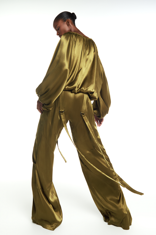 CALÇA RECORTES FAIXAS CETIM VERDEPreço normal R$ 1.790,00Preço normalPreço unitário porR$ 1.790,00Preço promocional R$ 1.790,008x R$ 223,75