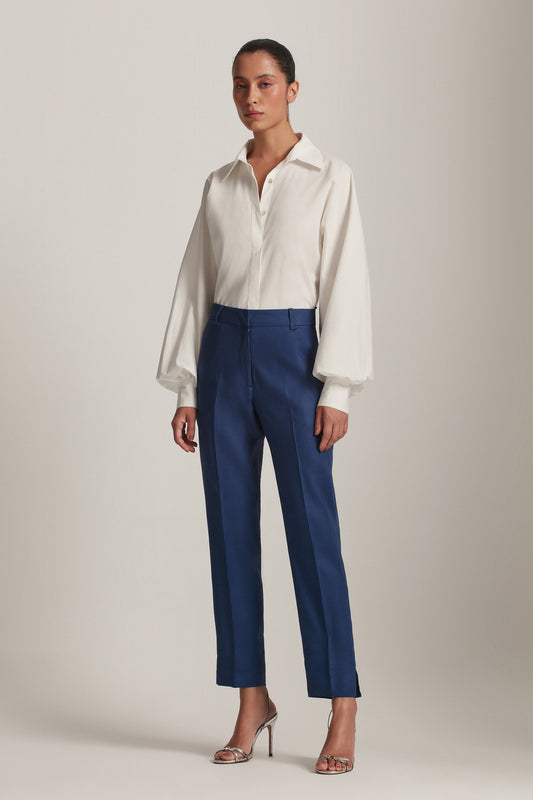 EsgotadoCALÇA SLIM CREPE AZUL CLARO