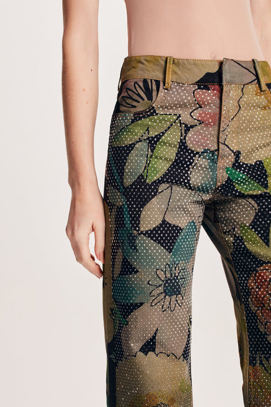 10 Dias úteisEsgotadoCALÇA SARJA FLORAL MULTICOLOR PEDRAS