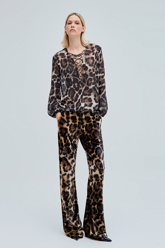EsgotadoCALÇA RETA VELUDO ESTAMPA ONÇA