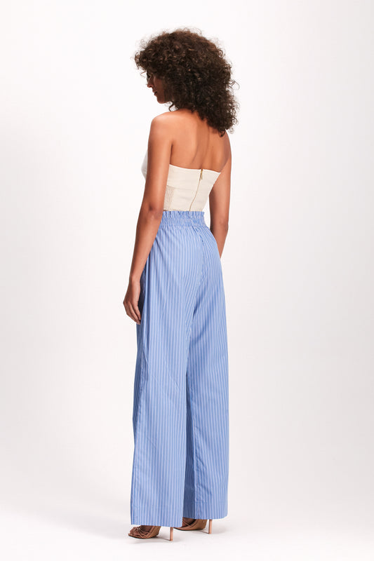 SaleCALÇA TRICOT AZUL LISTRAS BRANCAS