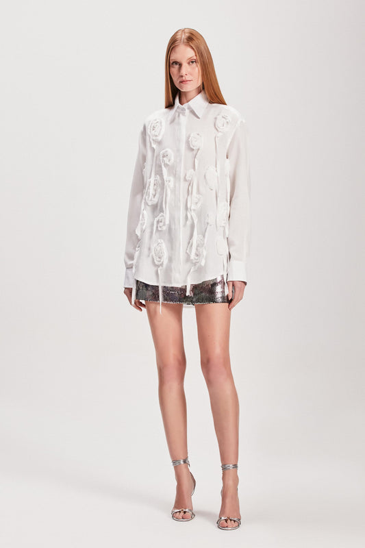 EsgotadoCAMISA LINHO FLORES APLICADAS OFF WHITE
