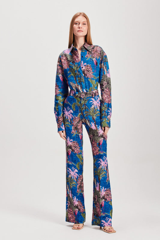 EsgotadoCAMISA LINHO ESTAMPA JUNGLE AZUL