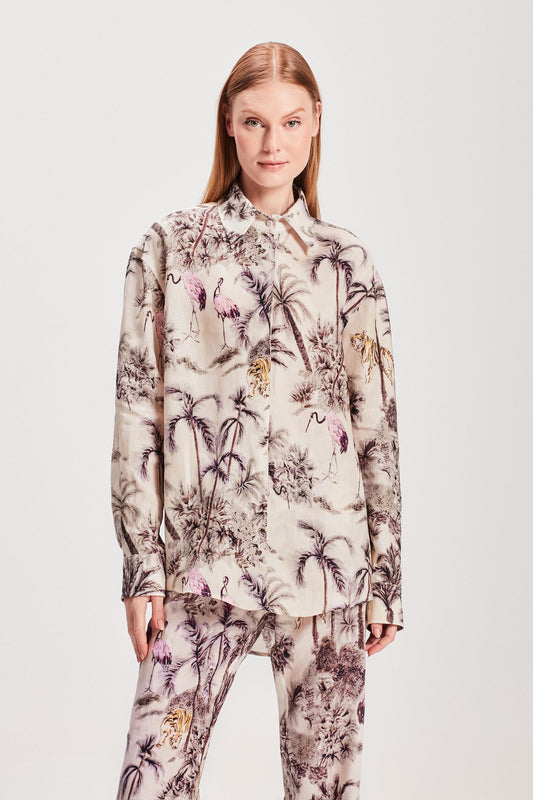 EsgotadoCAMISA LINHO ESTAMPA JUNGLE OFF WHITE