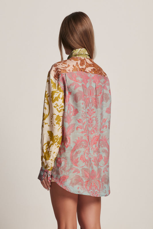 EsgotadoCAMISA LINHO ESTAMPA PATCHWORK