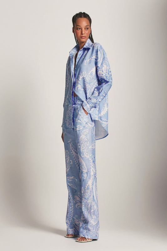 EsgotadoCAMISA LINHO ESTAMPA PAISLEY AZUL