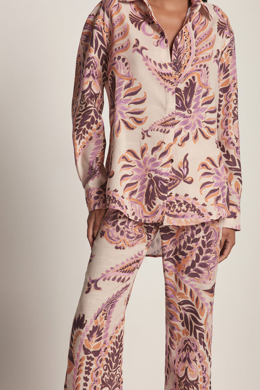 SaleCAMISA LINHO ESTAMPA PAISLEY ROSA E MARROM