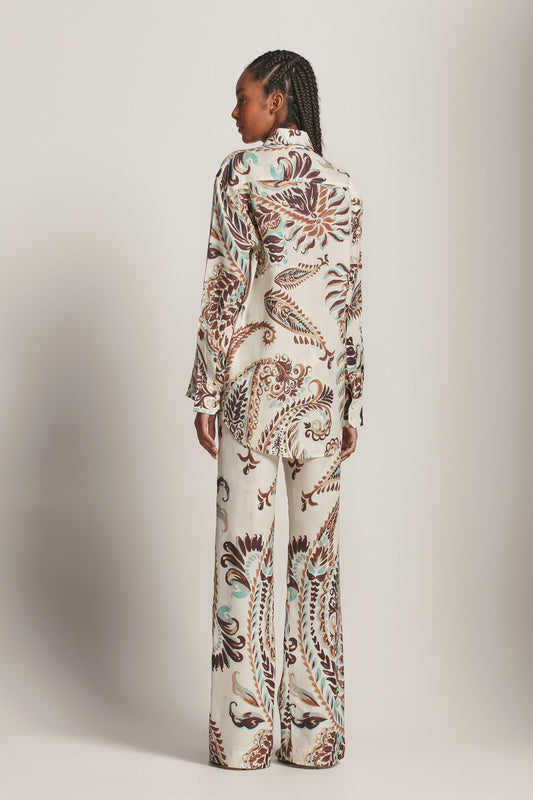 EsgotadoCAMISA LINHO ESTAMPA PAISLEY VERDE E MARROM