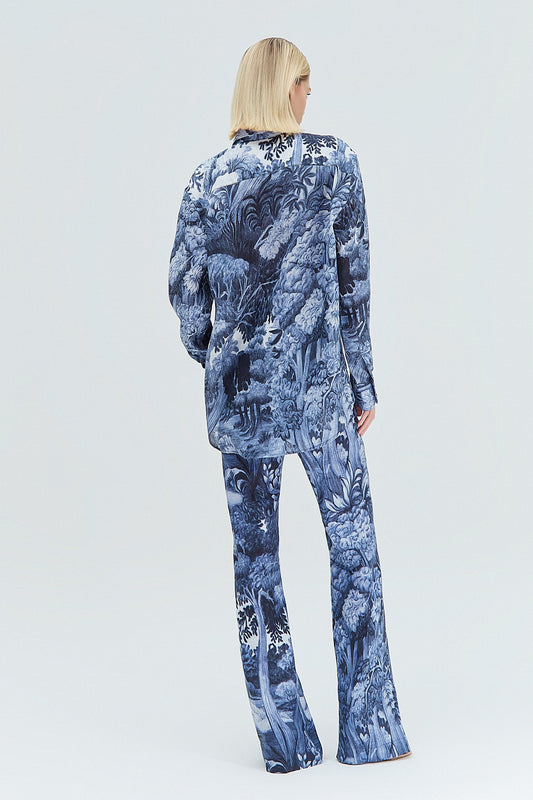 EsgotadoCAMISA LINHO ESTAMPA FLORESTA AZUL