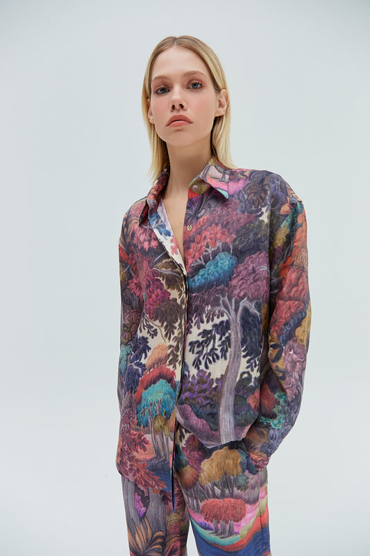 SaleCAMISA LINHO ESTAMPA FLORESTA COLORIDA