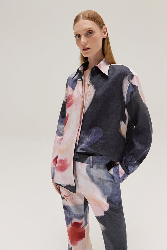 EsgotadoCAMISA LINHO FLORAL PIXEL AZUL