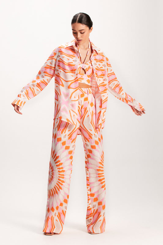 EsgotadoCAMISA LINHO ESTAMPA MANDALA LARANJA E ROSA