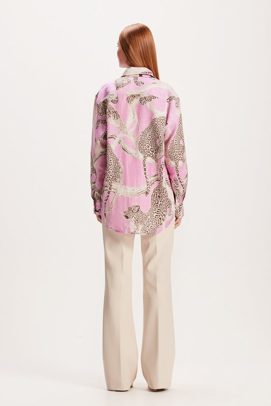 EsgotadoCAMISA LINHO ESTAMPA ONÇA ROSA