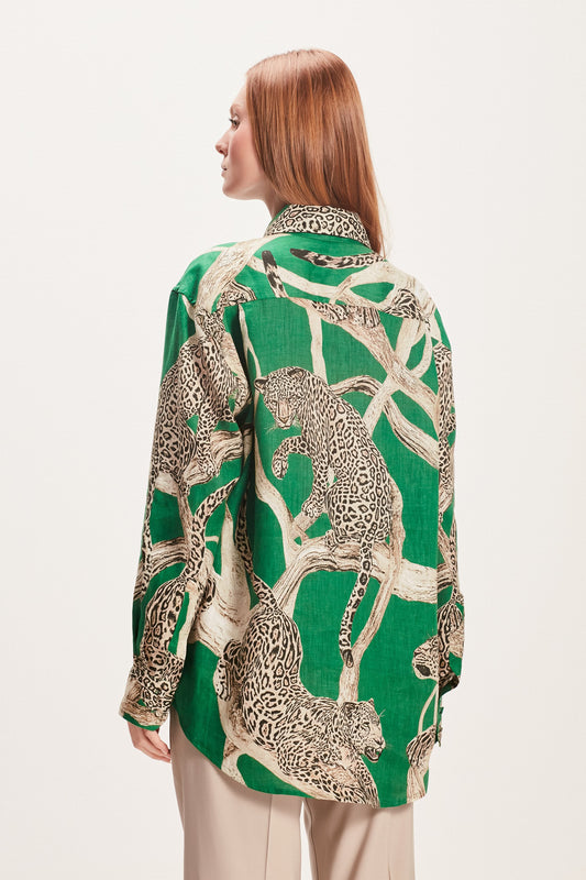 EsgotadoCAMISA LINHO ESTAMPADA ONÇA VERDE