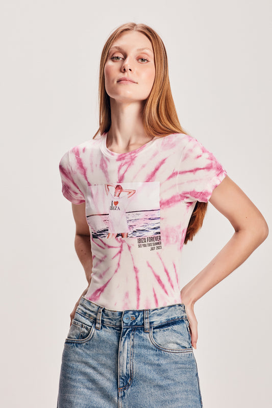 SaleCAMISETA MALHA MANGA CURTA TIE DYE ROSA