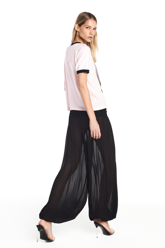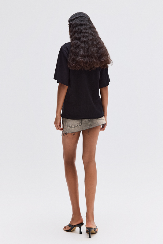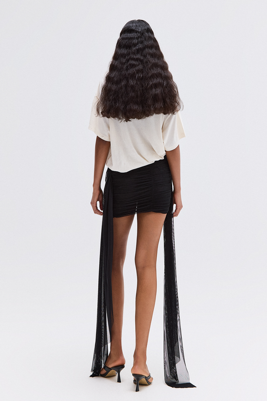 CAMISETA DECOTE V PROFUNDO AMARRAÇÃO MALHA PRETA